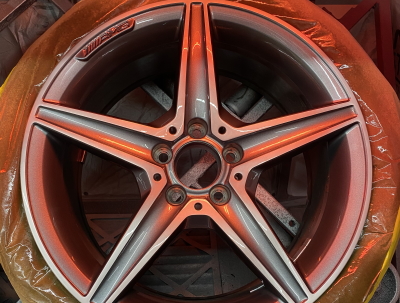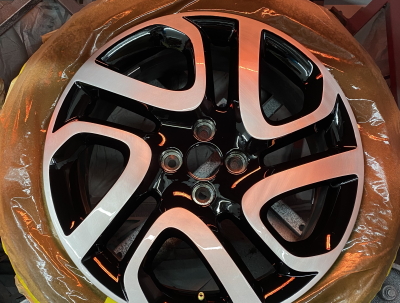 Powder coating is a dry colour powder that is sprayed onto your alloy wheels in the same way that traditional lacquer is, but the colour is then ‘baked’ onto the surface to form a hard finish.